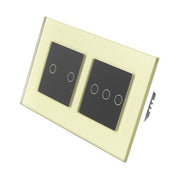 I LumoS Luxury Gold Glass Frame & Black Insert LED On/Off Touch Light Switches