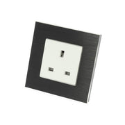 I LumoS Luxury Unswitched Black Brushed Aluminium UK 13A Plug Single Socket