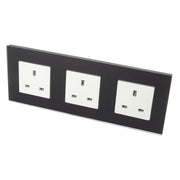 I LumoS Luxury Unswitched Black Glass Frame UK 13A Wall Plug Triple Socket