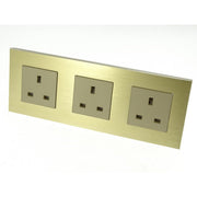 I LumoS Luxury Unswitched Gold Brushed Aluminium UK 13A Wall Plug Triple Socket