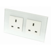 I LumoS Luxury Unswitched White Glass 13A UK Wall Plug Double Socket