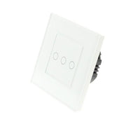 White Glass Panel LED Remote Dimmer Touch Light Switches: These switches can turn the lights on/off and are operated by Touch. These switches are LED compatible as well as all Halogen bulbs and fittings. In addition, the Switch has a blue backlight for each Gang, making it visible in the dark making it easier to find your switch at night.