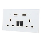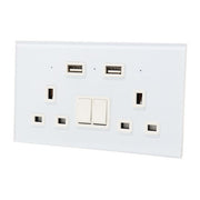 I LumoS Luxury White Glass Panel 13A Switched UK Plug Double Socket with 3.1A Double USB Charger