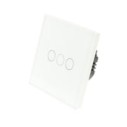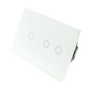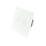 White Glass Panel LED Remote On/Off Touch Light Switches: These switches can turn the lights on/off and are operated by Touch. These switches are LED compatible as well as all Halogen bulbs and fittings. In addition, the Switch has a blue backlight for each Gang, making it visible in the dark making it easier to find your switch at night.