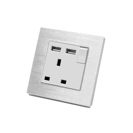 View full detailsI LumoS Luxury Switched Silver Brushed Aluminium UK 13A Plug Single Socket with 3.1A Double USB Charger