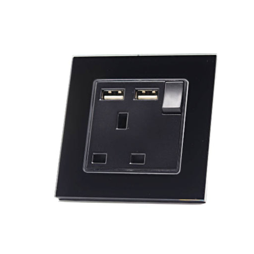 I LumoS Luxury Switched Black Brushed Aluminium UK 13A Plug Single Socket with 3.1A Double USB Charger