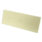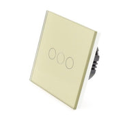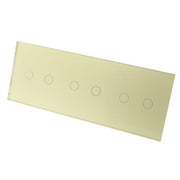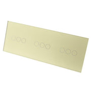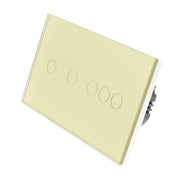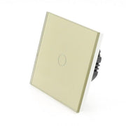 Gold Glass Panel LED Remote On/Off Touch Light Switches: These switches can turn the lights on/off and are operated by Touch. These switches are LED compatible as well as all Halogen bulbs and fittings. In addition, the Switch has a blue backlight for each Gang, making it visible in the dark making it easier to find your switch at night.