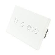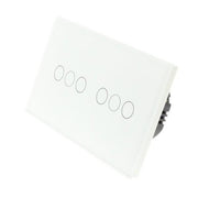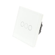 White Glass Panel LED PRO WIFI On/Off Touch Light Switches: These switches can be used to turn the lights on/off and is operated by Touch & by a Tablet or Smartphone. These switches are LED compatible and work well with most LED lights in the market. In addition, the switch has a blue backlight for each Gang, making it visible in the dark, making it easier to find your switch at night. These switches require a Neutral Cable to operate.